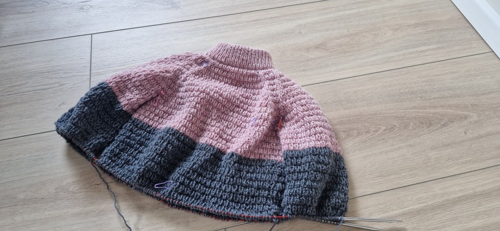 2 cm knitted. I have about 6 cm left of the body and 10 cm left of the sleeves so it might take a couple of weeks to finish this.