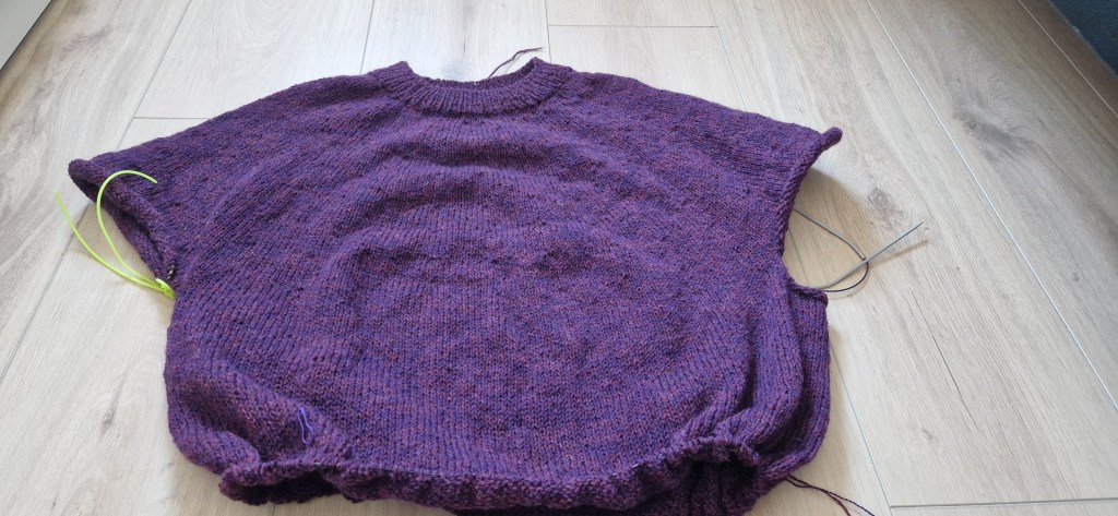 This is my grab and go knitting project. When I know I might have to wait. I have knitted quite a lot and I am almost finished with the body.
