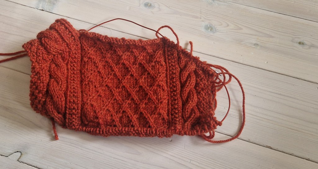 I haven’t been knitting that much from the lopi. I used to love knitting with lopi but at the moment I am not really sure about it. I think I have just knitted two colours since May! Need to get on with it so I can sew in the insert and start using it.