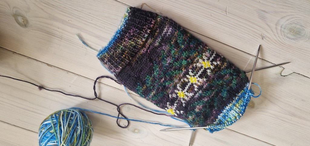 I have loved knitting this one. Just super soothing and nice. I am on the fourth last colour! I am actually thinking I can finish this one! I started writing about it in my first WIP!