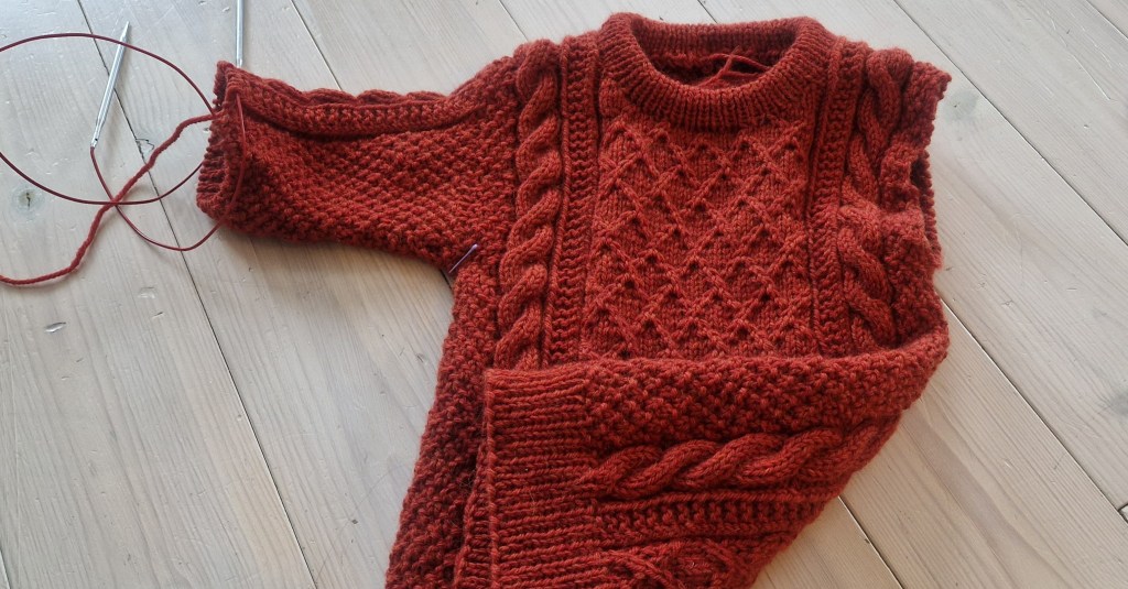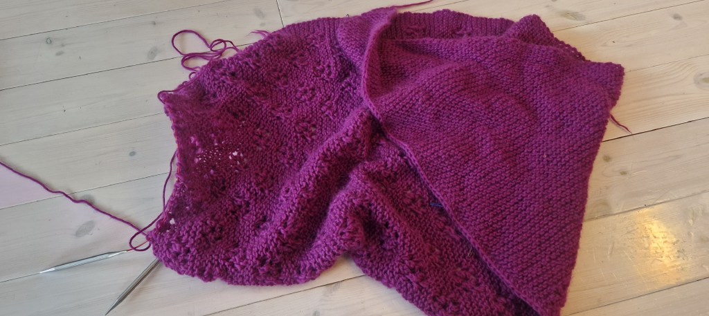 I have finished the body, neck and half a sleeve. I like knitting this sweater so that is not the problem. And I assume it will be finished in the next couple of weeks.