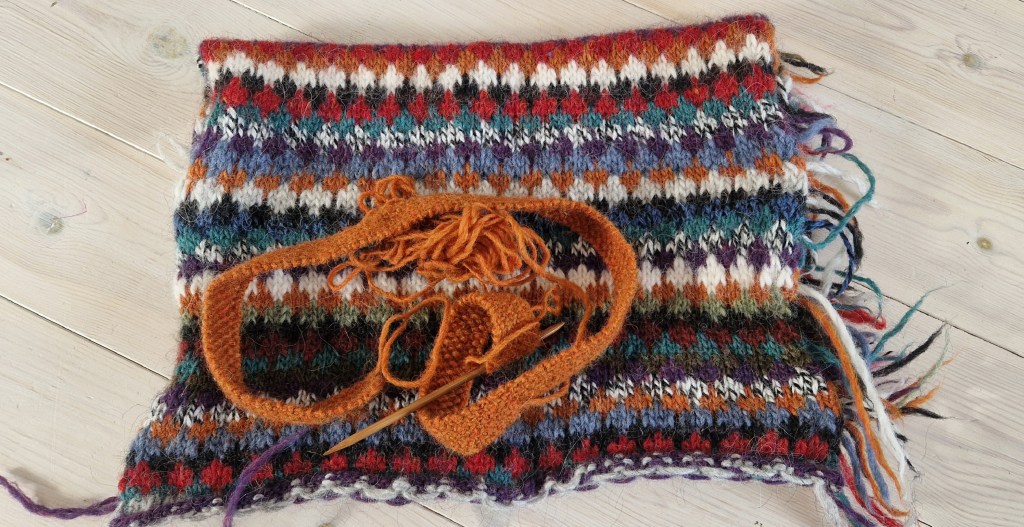 This one is amazing to knit, it is a free pattern from Drops and I am having a blast knitting it. I will probably finish the dark blue Holst titicaca and then start using the purple one I have. I am hoping that I will finish all of the kambgarn with this sweater.